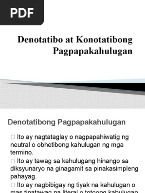 Denotatibo At Konotatibong Pagpapakahulugan
