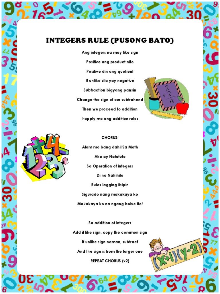 PUSONG BATO a Math version. A song composed by Ely Buendia of the Philippine poprock band Eraserheads for their 1995 studio album Cutterpillow. Bahay-Kubo ug Pen de Sarapen c.